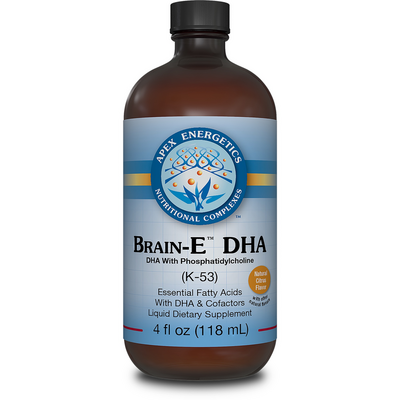 Brain-E™ DHA is a source of high quality omega-3 fish oil that includes 1200 mg of DHA per serving. It also incorporates phosphatidylcholine and is an excellent source of vitamin E. Omega-3 fatty acids are vital to the health and function of the brain and play critical roles in the structure, fluidity, and permeability of cell membranes.* They are also necessary for healthy intercellular communication (signaling).* Also available in a softgel Brain-E™ DHA 1200-TG (K114).