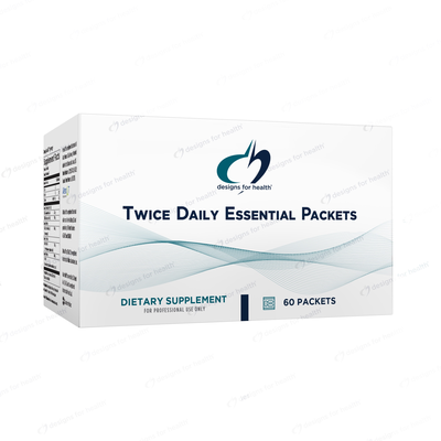 Twice Daily Essential Packets allow patients to get their daily essential nutrients in two easy packets. No need to count, sort, or measure. All the basics are here: Twice Daily Multi™, Calcium Malate, and Magnesium Malate (both excluded from the Twice Daily Multi™ to allow for meaningful doses), in addition to omega-3 fatty acids. Twice Daily Essential Packets are a perfect foundation for people just getting started on a vitamin regimen, those focused on comprehensive maintenance, and as a starting point for weight loss programs and other health regimens.