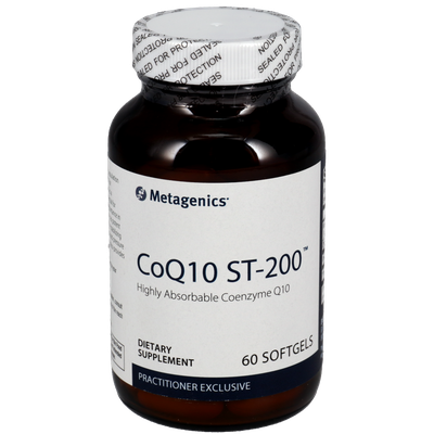CoQ10 ST-200™ features a stabilized encapsulation of coenzyme Q10 (CoQ10) manufactured specifically for stability, purity, and bioavailability. CoQ10 is a naturally occurring substance that is essential for energy production and is of particular importance in supporting cardiovascular health. CoQ10 has potent antioxidant properties and cell membrane stabilizing effects, and may help maintain healthy blood pressure already in the normal range. This formula also provides the antioxidant vitamin E.*