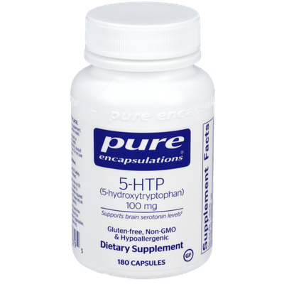 5-Hydroxytryptophan (5-HTP) is an intermediate in the natural synthesis of the essential amino acid, tryptophan, to serotonin. The enzyme tryptophan hydroxylase adds a hydroxyl group (OH) to tryptophan, forming the 5-HTP intermediate. In the body, it converts to serotonin with the removal of a carboxyl group (COOH) by a second enzyme. Serotonin is an important neurotransmitter involved in the regulation of endocrine and brain activity responsible for emotion, appetite and sleep/wake cycles. In clinical studies, administration of 5-HTP supported serotonin production. The 5-HTP supplied in this supplement is derived from the Griffonia simplicifolia plant.*