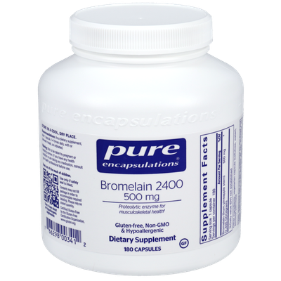 Bromelain is a proteolytic enzyme from the stem of the pineapple plant. Taken with food, bromelain aids in the healthy functioning of the digestive system. Taken between meals, bromelain maintains healthy kinin and fibrin production, supporting healthy musculoskeletal function.